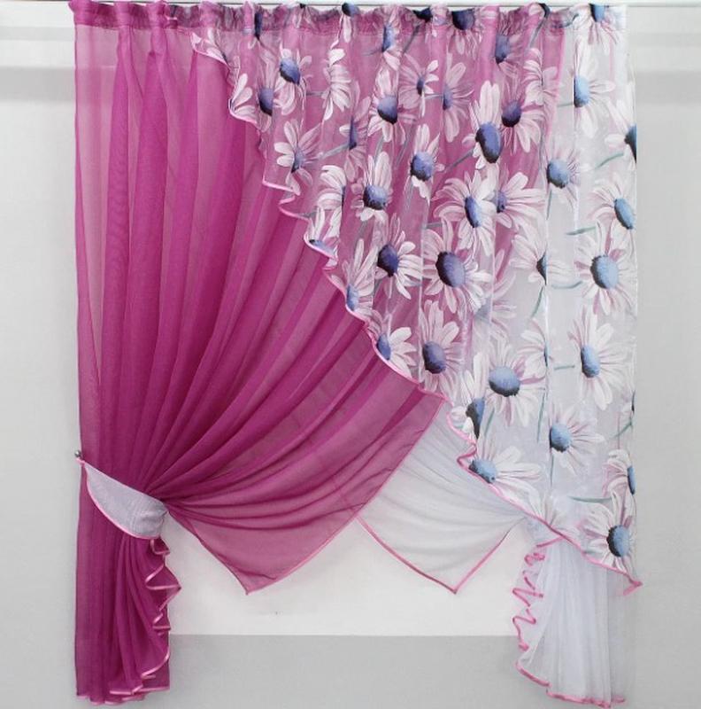 Фіранка на кухню, балкон (300х170см) шифон та органза. колір малиновий з білим