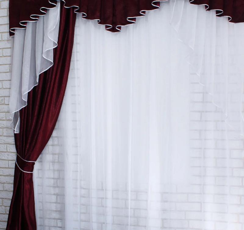 Комплект шторы с ламбрекеном из ткани блэкаут, цвет бордовый с белым