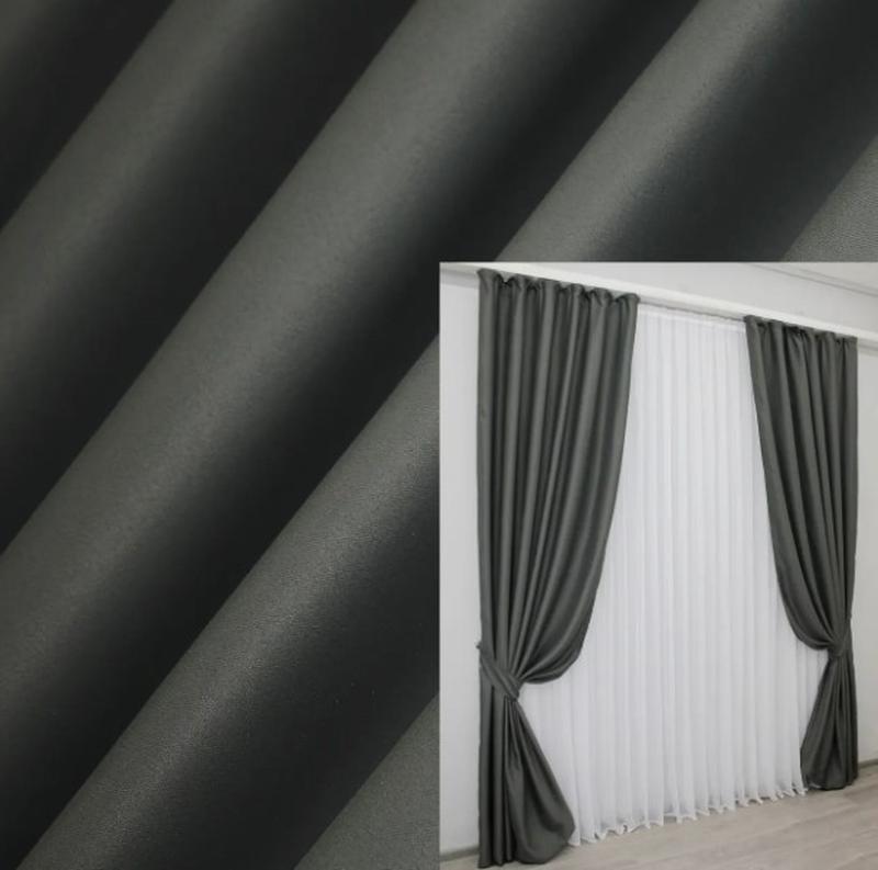 Штори виготовляються з якісного матеріалу на основі тканини блекаут. Вироби відрізняються високою міцністю, зносостійкістю та надовго збереже первісний вигляд. Комплект готових штор у вітальню чи спальню затримує тепло в холодну пору року та прикрасить будь-який стиль інтер'єру. Ширина кожної штори: 1.5м. Висота: 2.7м. Тканина: блекаут Колір: темно-сірий До штор пришита тасьма з петельками. У комплект входить: дві готові штори та два підхоплення. Інтернет магазин "Валіза текстилю" пропонує великий вибір товарів за низькою ціною. Ви можете перейти за посиланням на наш сайт та переглянути весь асортимент наших товарів ************************** Якщо вам подобається ця модель, але потрібно інші розміри або колір, звертайтеся за телефонами: +38**********, +38********** щодня.