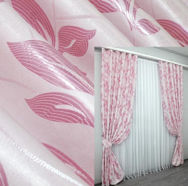 Штори з тканини блекаут (2шт. 1,5х2,7м) з візерунком. колір рожевий