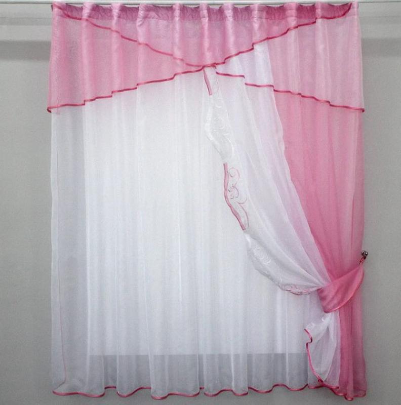 Комплект (290х170см.) шторка з тюллю і ламбрекеном. колір рожевий з білим