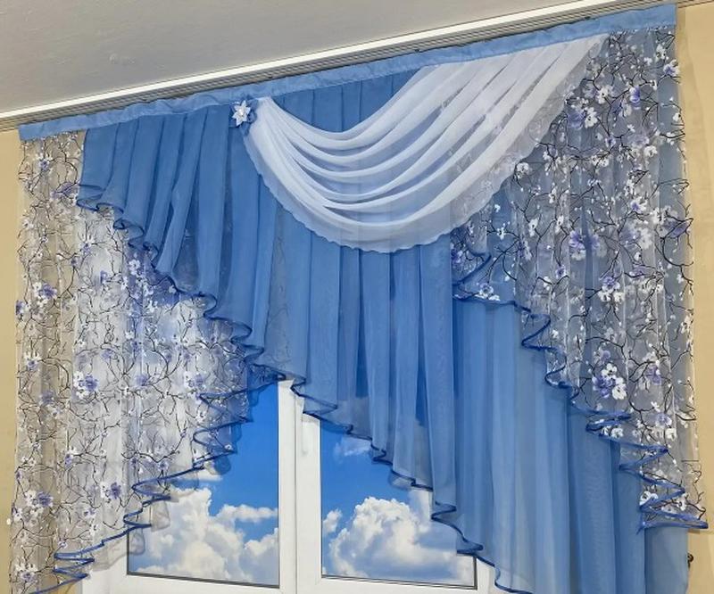 Тюль ламбрекен в дитячу, на кухню. колір блакитний