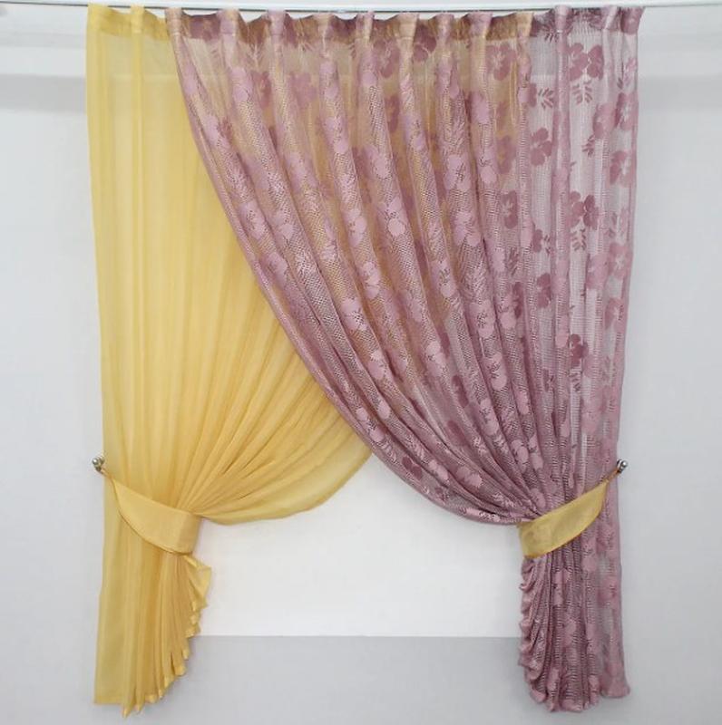### Кухонний комплект штор додасть нотки вишуканості та урочистості. Фіранка поєднує в собі два відтінки, які підкреслять колірну гаму інтер'єру. Готовий комплект штор на кухню пошитий із шифону, що додає приміщенню легкості та легкості. Розраховані шторки на карниз 2 м. Ширина у розтягнутому вигляді 3.3 м. Довжина 1.7 м. Вказуйте у коментарях. До комплекту пришита тасьма з петельками. Тканина - шифон та сітка Інтернет магазин "Чемодан текстилю" пропонує великий вибір готових штор, фіранок на кухню, балкон, а також тюлі та гардини за привабливою ціною. Весь асортимент Ви можете подивитись на нашому сайті за посиланням https://ch- *************** Якщо вам подобається ця модель, але потрібно інші розміри або колір, звертайтеся за телефоном ********** або **********.
