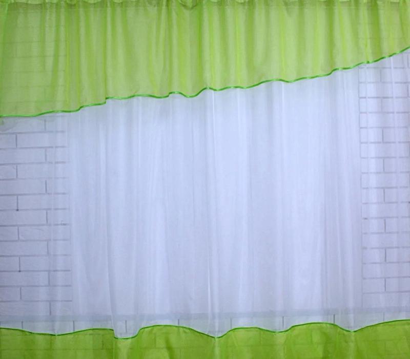 Комплект выполнен из двух цветов шифона, благодаря этому достаточно легкая и износостойкая текстура ткани проста в уходе и часто используеться в пошиве.Благодаря своей форме она подойтет практически на любое окно. Данная модель так же отлично подойдет для Вашей кухни, на балкон, а также на любое другое окно. Ширина в розтянутом виде 2.8 м. Длина 1.7 м. К комплекту пришита тесьма с петельками. Ткань - шифон. Интернет магазин "Чемодан текстиля" предлагает большой выбор товаров по низкой цене. Вы можете перейти по ссылке на наш сайт и посмотреть весь ассортимент наших товаров ************************** Если вам нравится эта модель, но нужно другие размеры или цвет, обращайтесь по телефону: +38********** или ********** каждый день.