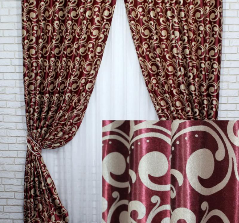Штори (2шт. 1.5х2.7м) з тканини блекаут-софт. колір бордовий з бежевим