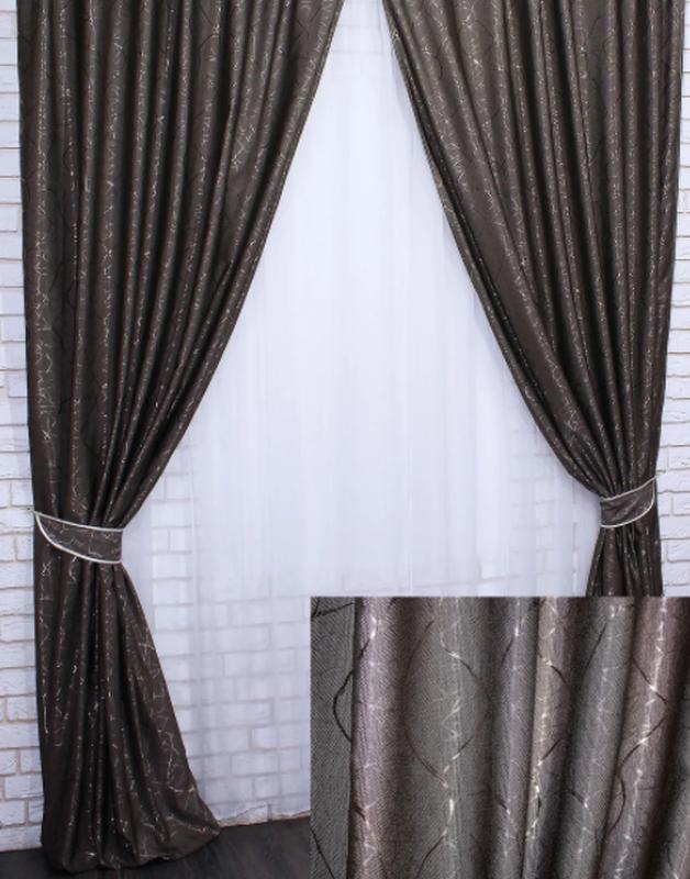 Комплект готових штор, із тканини блекаут рогожка, колекція "савана". колір темне какао