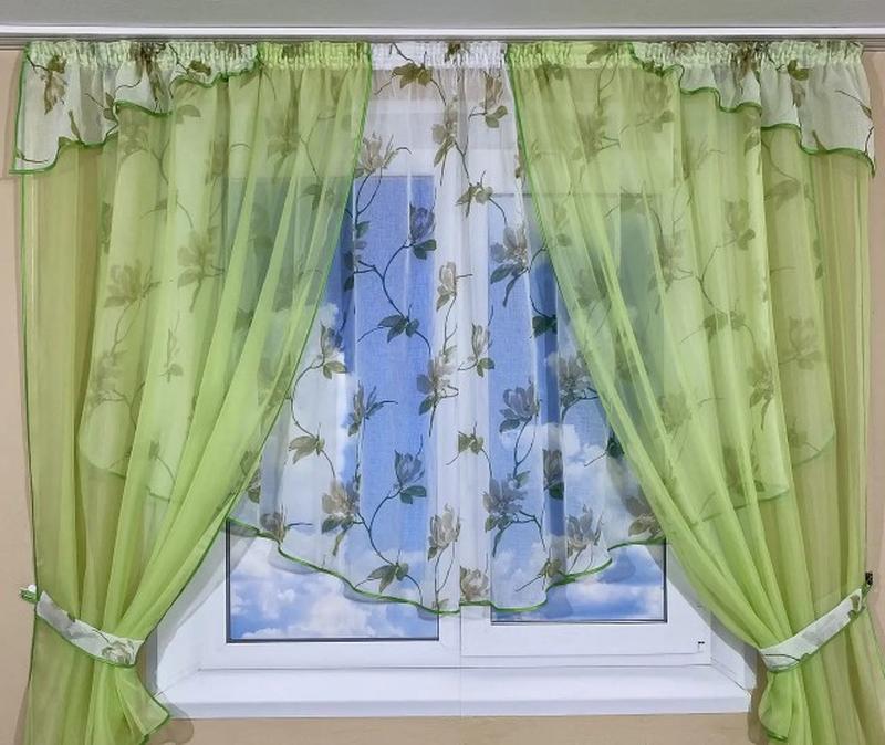 Фіранка на кухню з квітковим принтом. колір салатовий