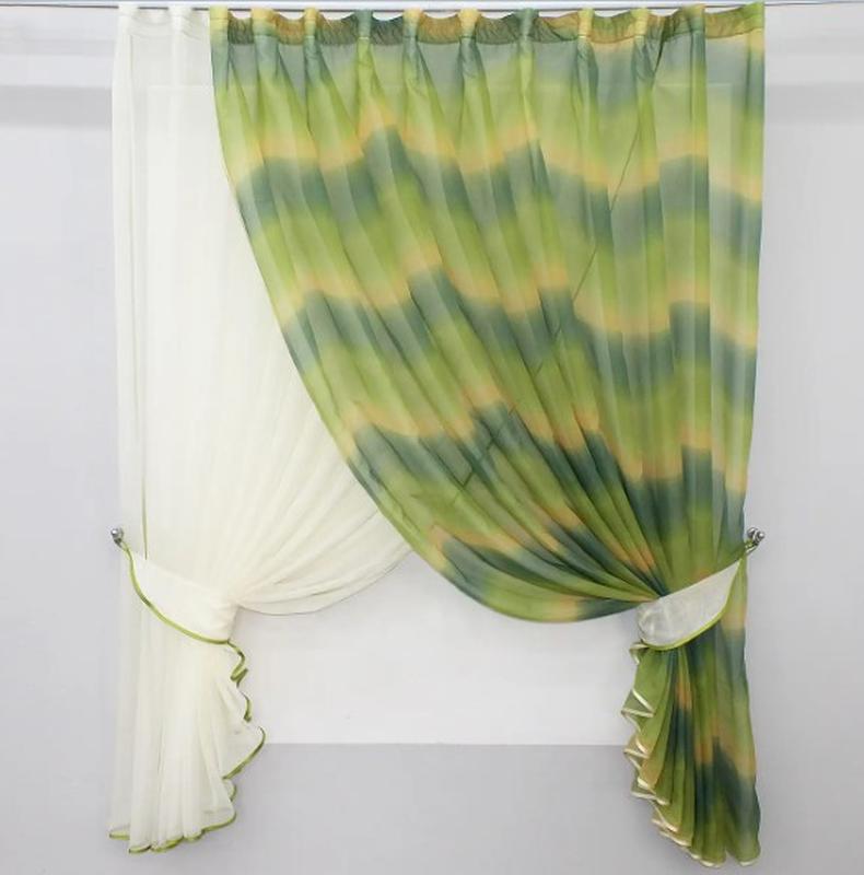 Готовий комплект штор на кухню красиво виглядає в інтер'єрі, надає легкості. Крім того, гардини не вибагливі, не вимагають особливого догляду. Пришита шторна стрічка для гачків. Шторки розраховані на карниз 1,5-2 м. Ширина в розтянутом вигляді 3.3 м. Довжина 1. 7 м. До комплекту пришита тасьма з петельками. Тканина - шифон Інтернет магазин "Чемодан текстилю" пропонує великий вибір готових штор, фіранок на кухню, балкон, а також тюлі та гардини за привабливою ціною. Весь асортимент Ви можете подивитись на нашому сайті за посиланням https://ch- *************** Якщо вам подобається ця модель, але потрібно інші розміри або колір, звертайтеся за телефоном ********** або **********