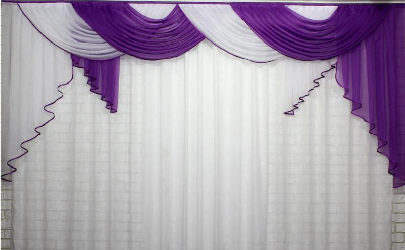Ламбрекен з тканини шифон на карниз 3 м. №140, колір фіолетовий з білим