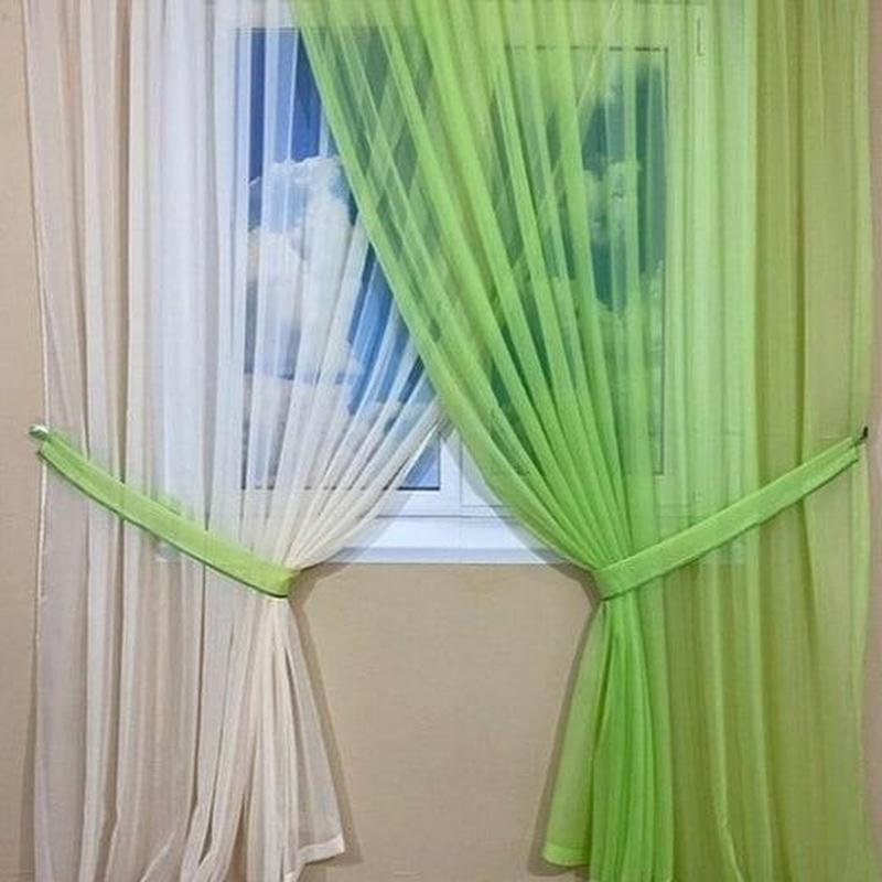 Комплект штор из вуали, салатовый с белым, по 2м