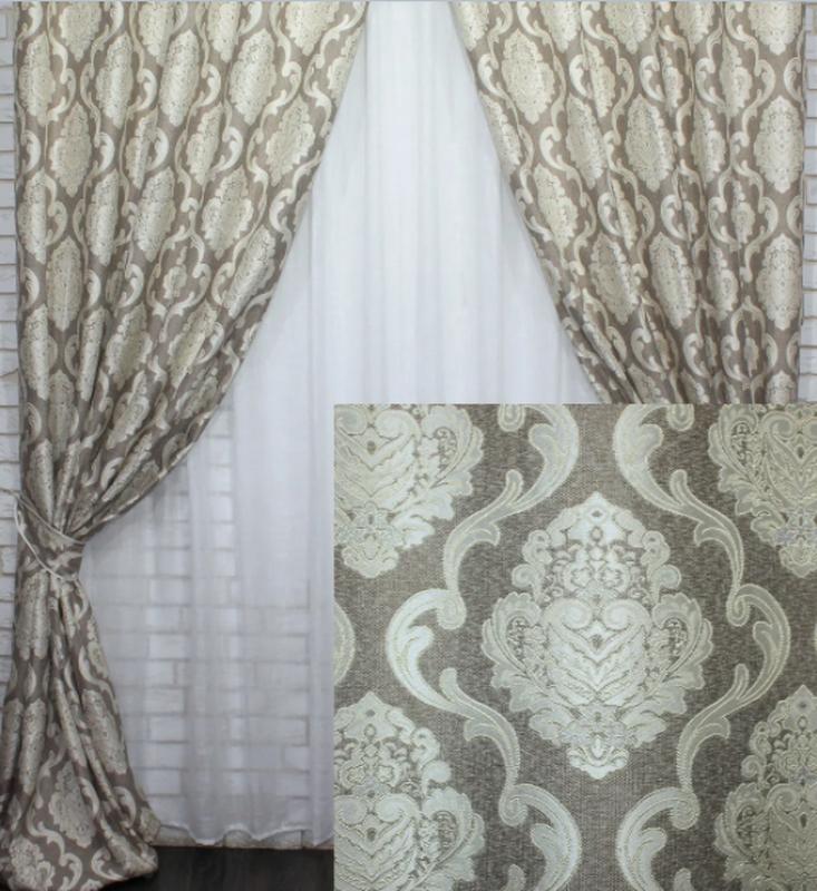Комплект готових штор з тканини льон "вензель" (2шт. 1,5х2,7) . колір золотистий код 542ш