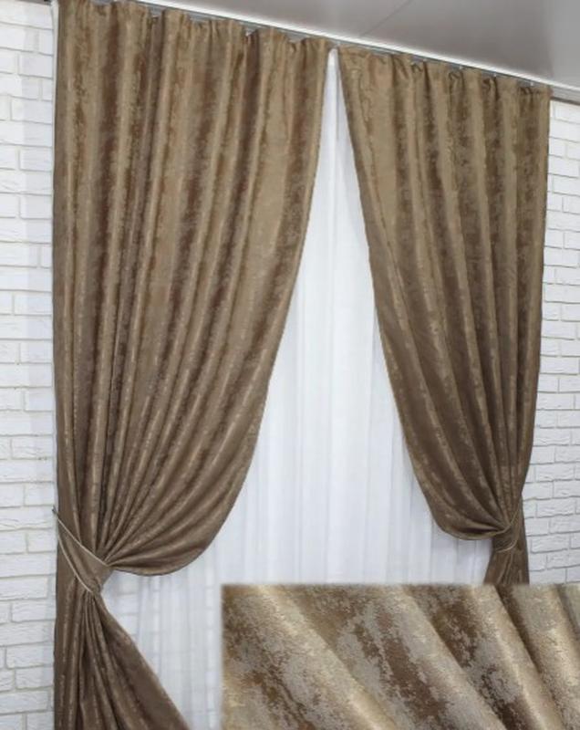 Комплект готових штор із жаккарду (1х2.7), колекція "sultan" туреччина. колір світло-корич...