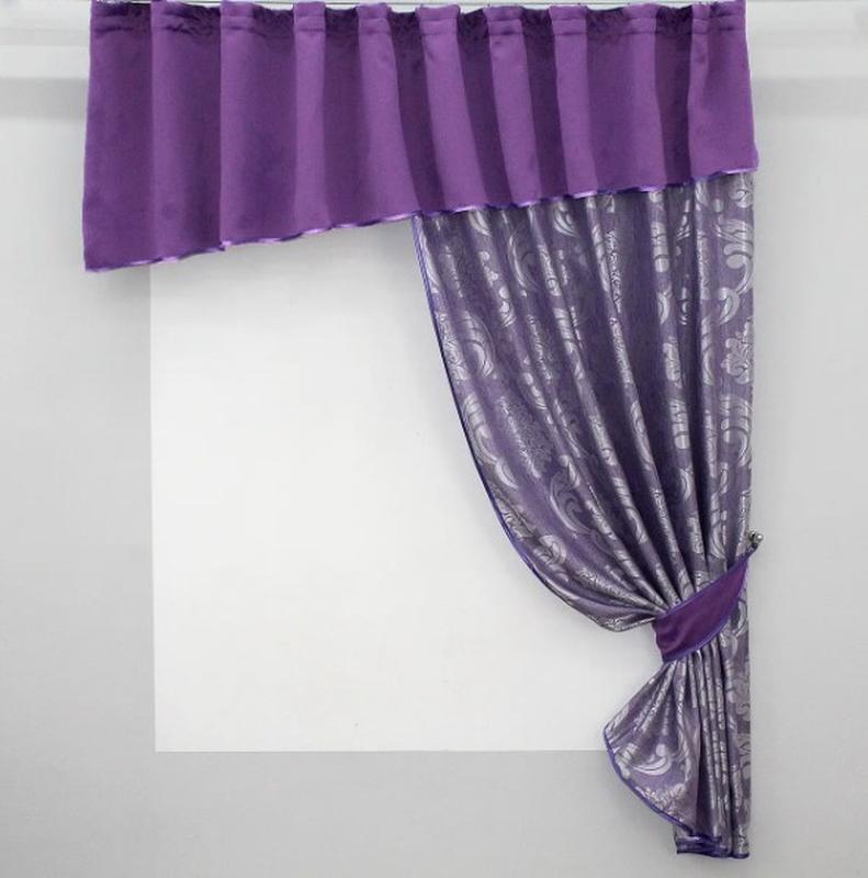 Штори на кухню, балкон (270х170см) блекаут та жакард. колір фіолетовий з бузковим