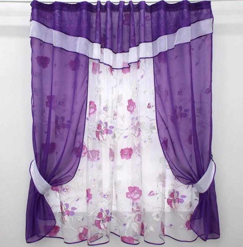 Фіранка на кухню, балкон (280х170см) шторки з тюлью і ламбрекеном. колір фіолетовий з роже...