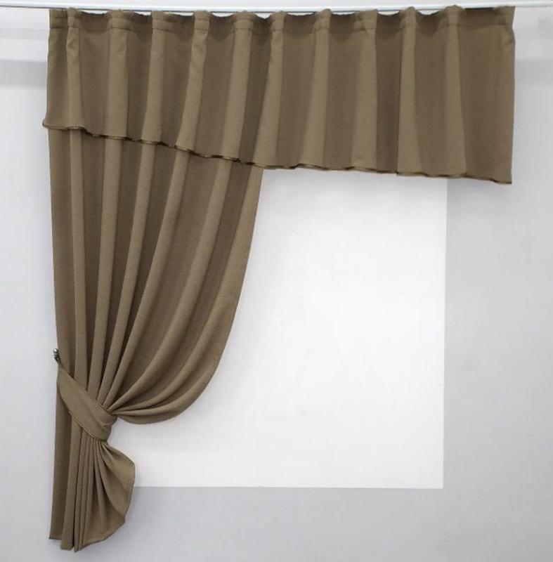 Шторки на кухню, балкон (280х170см) з ламбрекеном та підв'язками. колір світло-кавовий