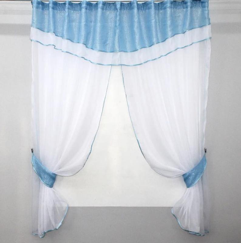 Вишукана фіранка на кухню (270х170см) з ламбрекеном. колір блакитний з білим