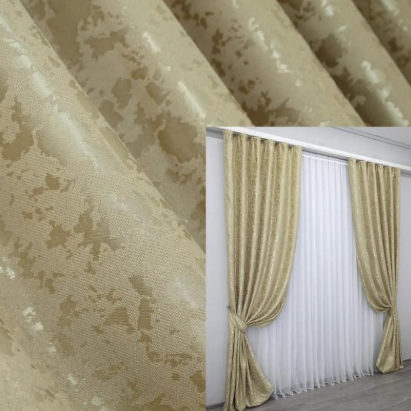 Штори в вітальню, спальню (2шт. 1,5х2,8м) льон мармур, колекція "pavliani". колір бежевий