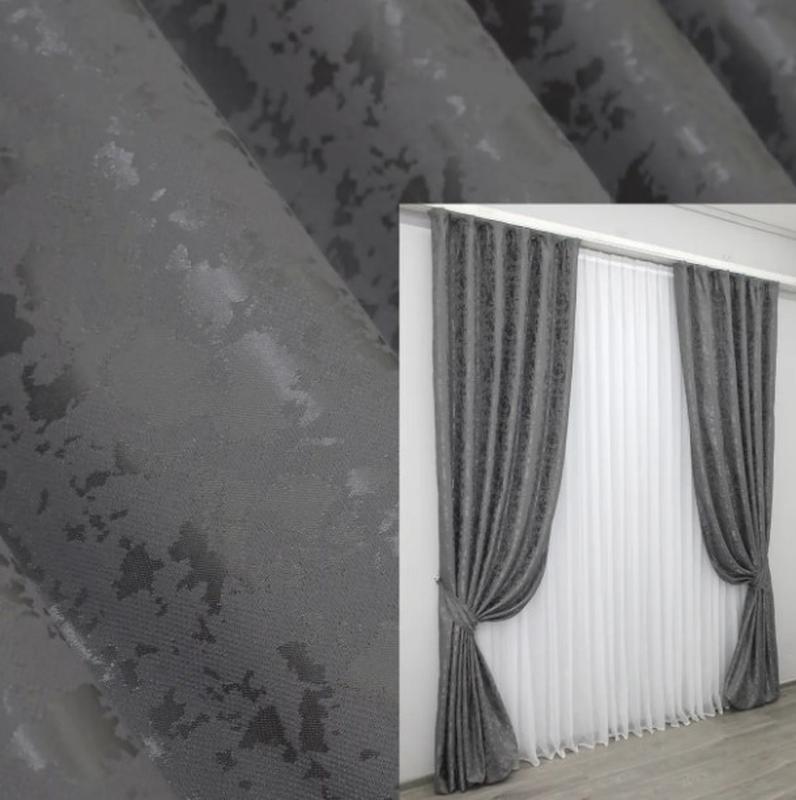 Комплект готових штор виготовлений з тканини льон. Штори з тканини льон мармур добре закривають вікно, забезпечуючи комфортну атмосферу в інтер'єрі. Порт'єри відрізняються чудовою зносостійкістю, надійним захистом від проникнення сонячних променів, а також здатністю збереження тепла в холодну пору року. Ширина кожної штори: 1.5м. Висота 2.8м. Тканина: льон Колір: сірий До штор пришита тасьма з петельками. У комплект входить: дві готові штори та два підхоплення. Інтернет магазин "Чемодан текстилю" пропонує великий вибір готових штор, фіранок на кухню, балкон, а також тюлі та гардини за привабливою ціною. Весь асортимент Ви можете подивитись на нашому сайті за посиланням https://ch- *************** Якщо вам подобається ця модель, але потрібно інші розміри або колір, звертайтеся за телефоном ********** або **********.