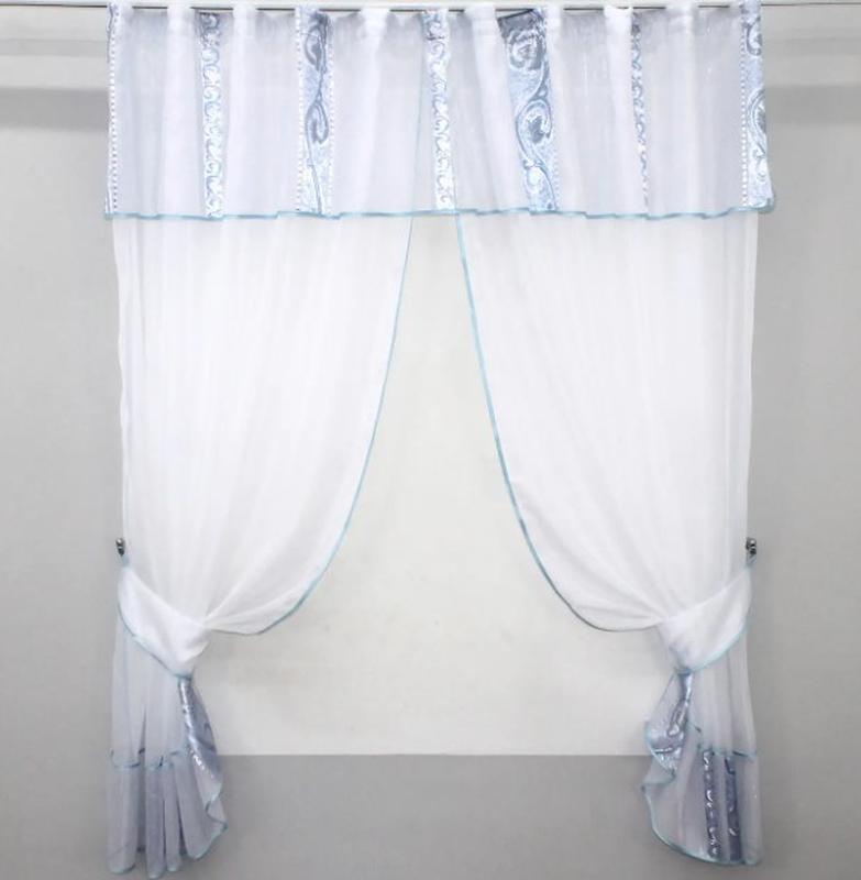 Комплект штор на кухню, балкон (280х170см) з ламбрекеном. колір блакитний з білим
