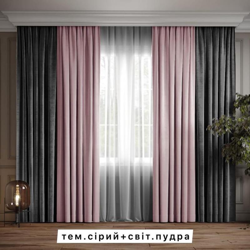 Комплект рохкішних та якісних штор (2шт. 1,5х2,7м) оксамит. колір сірий з світлою пудрою