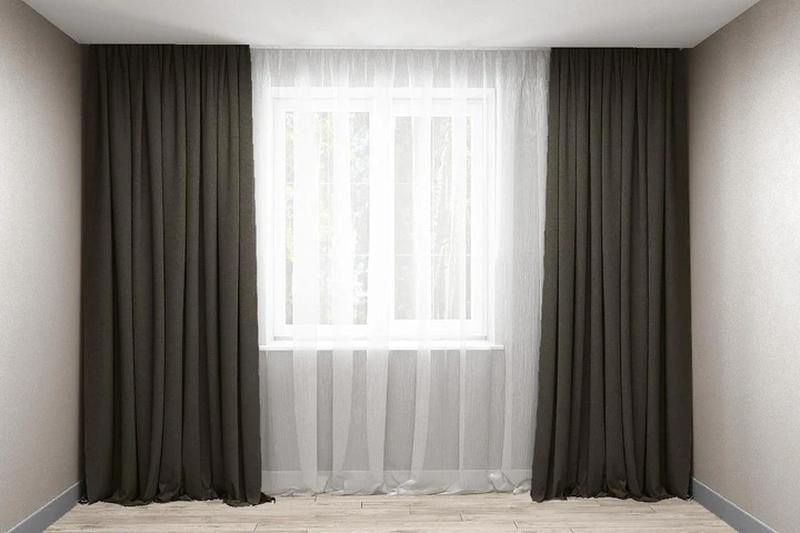 Полностью готовое изделие. Цена указана за изделие с учётом набора ткани, фурнитуры и работы. В наборе 2 шт. - Длина - 240 см; - Ширина - 200 см; Сверху пришита хлопковая шторная тесьма, шириной 6 см.