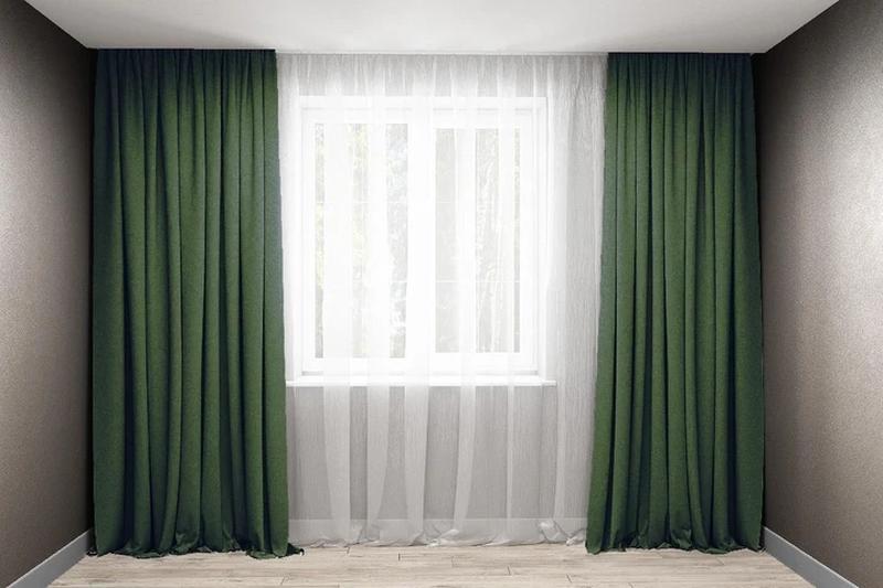 Полностью готовое изделие. Цена указана за изделие с учётом набора ткани, фурнитуры и работы. В наборе 2 шт. - Длина - 245 см; - Ширина - 150 см; Сверху пришита хлопковая шторная тесьма, шириной 6 см.