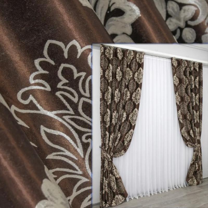 Порт'єри, колекція "корона" (2шт. 1,5х2,75м) блекаут-софт. колір коричневий