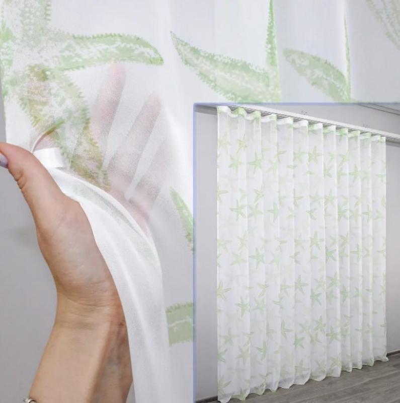Тюль шифон в вітальню, спальню. колір білий з салатовим