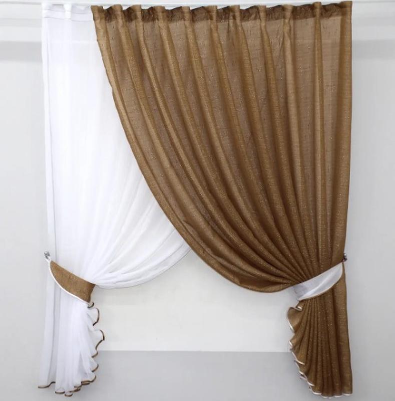 Вишукана фіранка на кухню (320х170см) з підв'язками. колір білий з карамельним