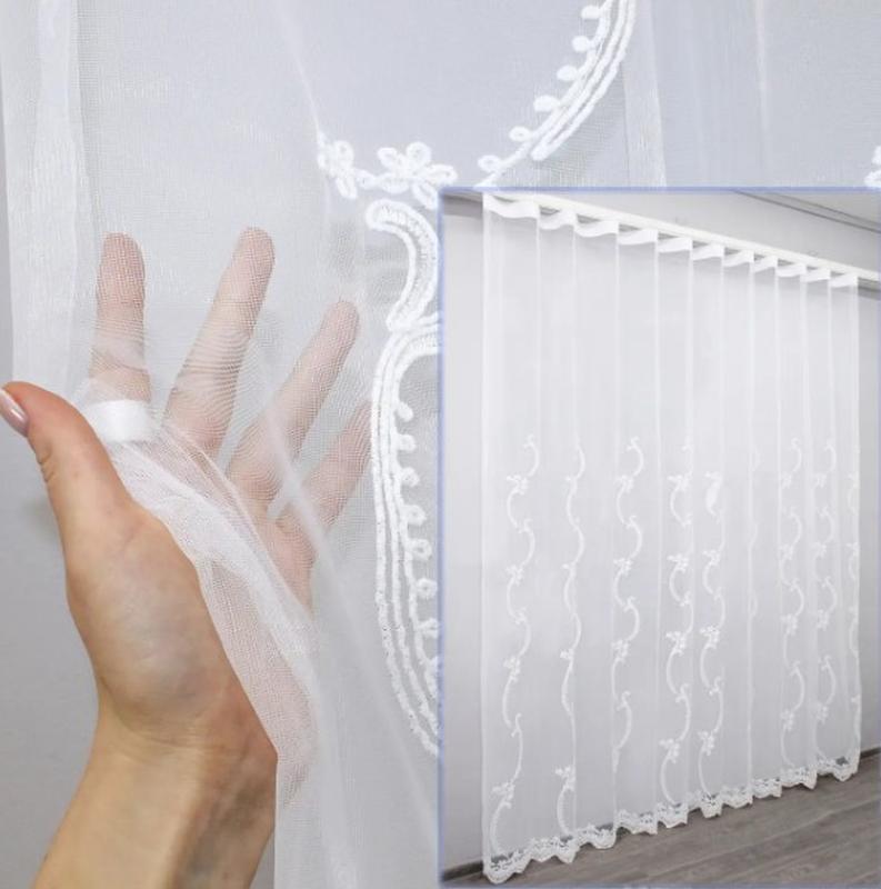 Тюль із фатину чудово освіжить інтер'єр, а будинку. Гардіна підійде для спальні, вітальні. Основа гардини з фатину сітка, яка надає приміщенню легкості та вишуканості, а низ вишитий найніжнішим мереживом. Виробник: Туреччина. Висота тюлі 2.7м, якщо вам потрібен тюль на відріз або з пошиттям вказуєте у коментарі. Колір: як на фото. Інтернет магазин "Чемодан текстилю" пропонує великий вибір готових штор, фіранок на кухню, балкон, а також тюлі та гардини за привабливою ціною. Весь асортимент Ви можете подивитись на нашому сайті за посиланням https://ch- *************** Якщо вам подобається ця модель, але потрібно інші розміри або колір, звертайтеся за телефоном ********** або **********.