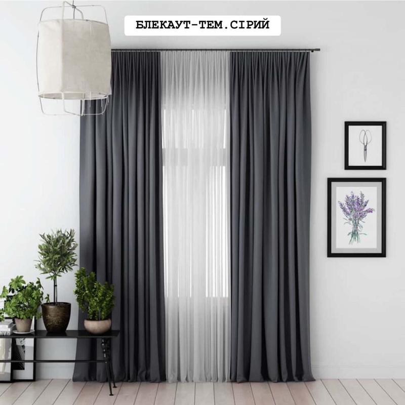 Комплект комбінованих штор підійде для вітальні чи спальні та виглядають дуже красиво та оригінально, що неодмінно освіжить інтер'єр, наповнюючи його теплом та затишком. Комбіновані штори пошиті з якісного матеріалу - блекаут. Тканина приємна на дотик, не линяє під час прасування, захищає від променів сонця та не пропускає холодне повітря. Ширина кожної штори: 1.5 м. Висота 2.7 м. Тканина: блекаут Колір: темно-сірий До штор пришита тасьма з петельками. У комплект входить: дві готові штори та два підхоплення. Інтернет магазин "Чемодан текстилю" пропонує великий вибір готових штор, фіранок на кухню, балкон, а також тюлі та гардини за привабливою ціною. Весь асортимент Ви можете подивитись на нашому сайті за посиланням https://ch- *************** Якщо вам подобається ця модель, але потрібно інші розміри або колір, звертайтеся за телефоном ********** або **********.