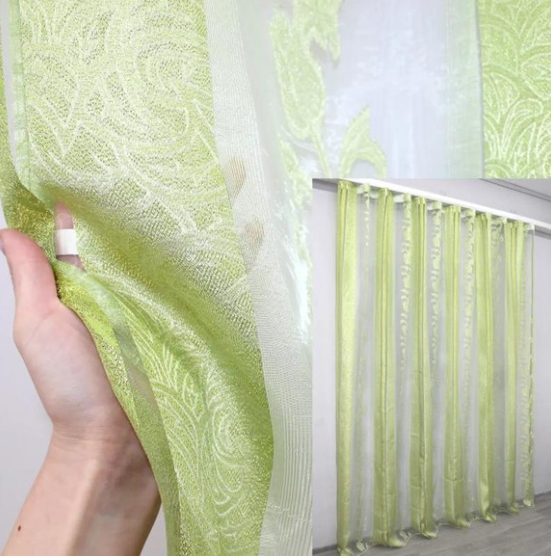 Тюль органза з нейлоновою вишивкою. колір салатовий з золотистим