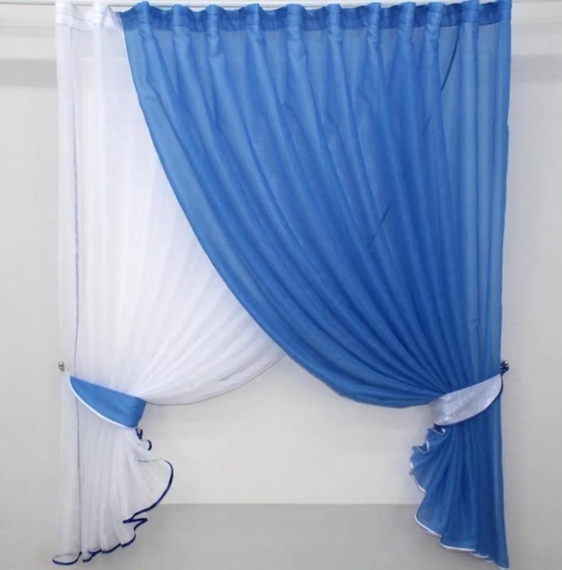 Комплект штор на кухню (320х170см) з підв'язками. колір блакитний з білим