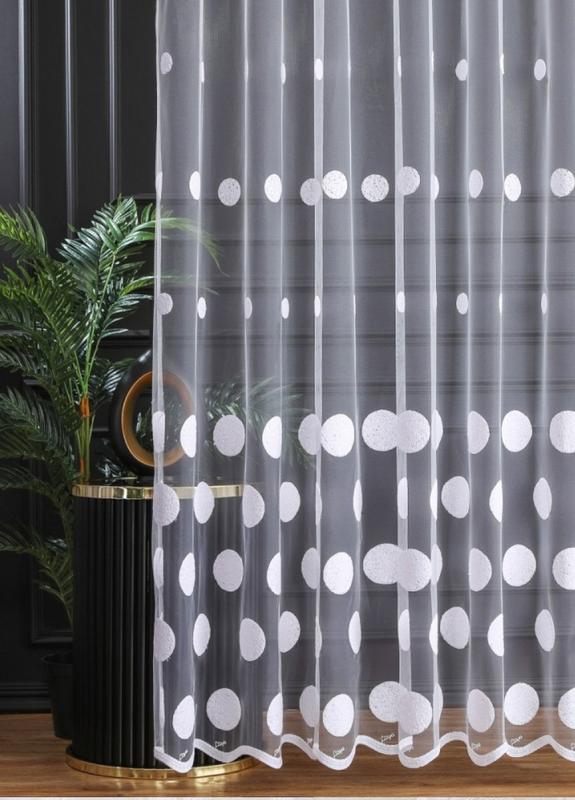 Нужно освежить интерьер? Легко выбираем тюль -- и интерьер обновлен! Предлагаем вам готовый пошитый тюль, шириной 300см на тесьме (шторной ленте) Смотрится легко и ненавязчиво, подойдет для гостиной, спальни, детской комнаты или балкона. Шарики сверху меньше, по низу полотна -- больше. Этот легкий переход добавляет легкости. Очень легко драпируется и ложится в складку. Тюль полностью готовый: пришита тесьма для крючков. Уход: стирка в деликатном режиме с температурой не выше 30 градусов.
