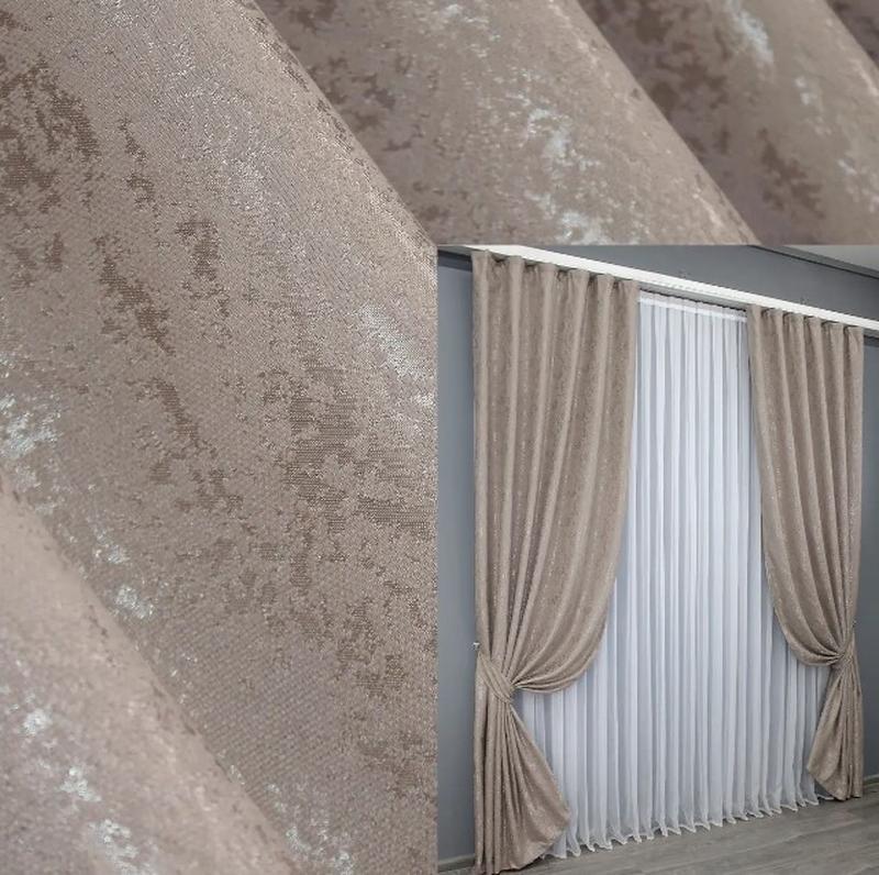 Комплект штор з тканини льон стане гарним доповненням до інтер'єру, який придасть дитячий, залі, вітальні чи будь-якому іншому приміщенню вишуканості. Головними перевагами портьєрної тканини, з якої пошиті штори, являються висока щільність, що надійно захищає кімнату від променів сонця, відмінна гігроскопічність, не линяє під час прасування та здатна поглинати шум. Крім того, вона зберігає тепло в приміщенні в холодну пору року. Ширина кожної штори: 1.5м. Висота: 2.7м. Тканина: льон Колір: пудрово-сірий До штор пришита тасьма з петельками. У комплект входить: дві готові штори.