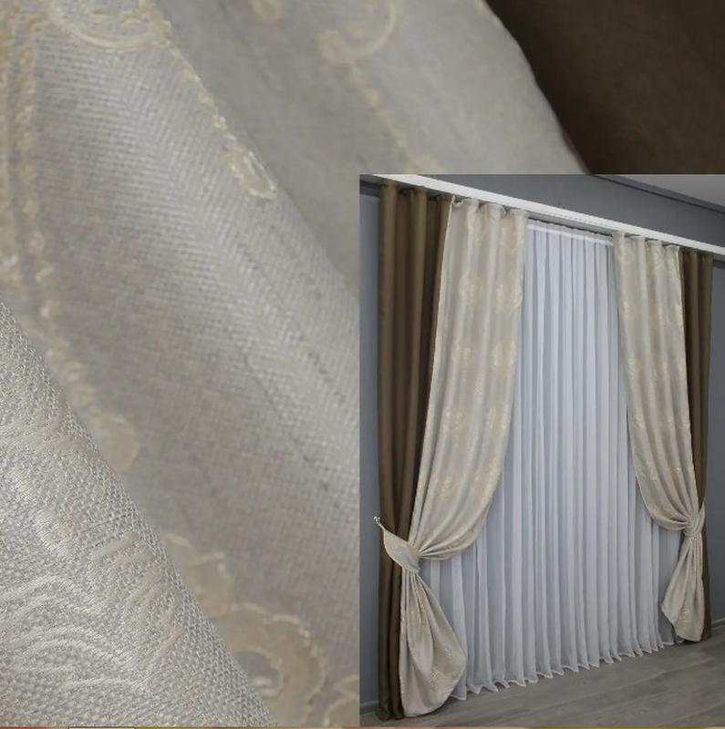 Комплект комбінованих штор (2шт.1,5х2,7м) льон блекаут. колір коричневий з бежевим