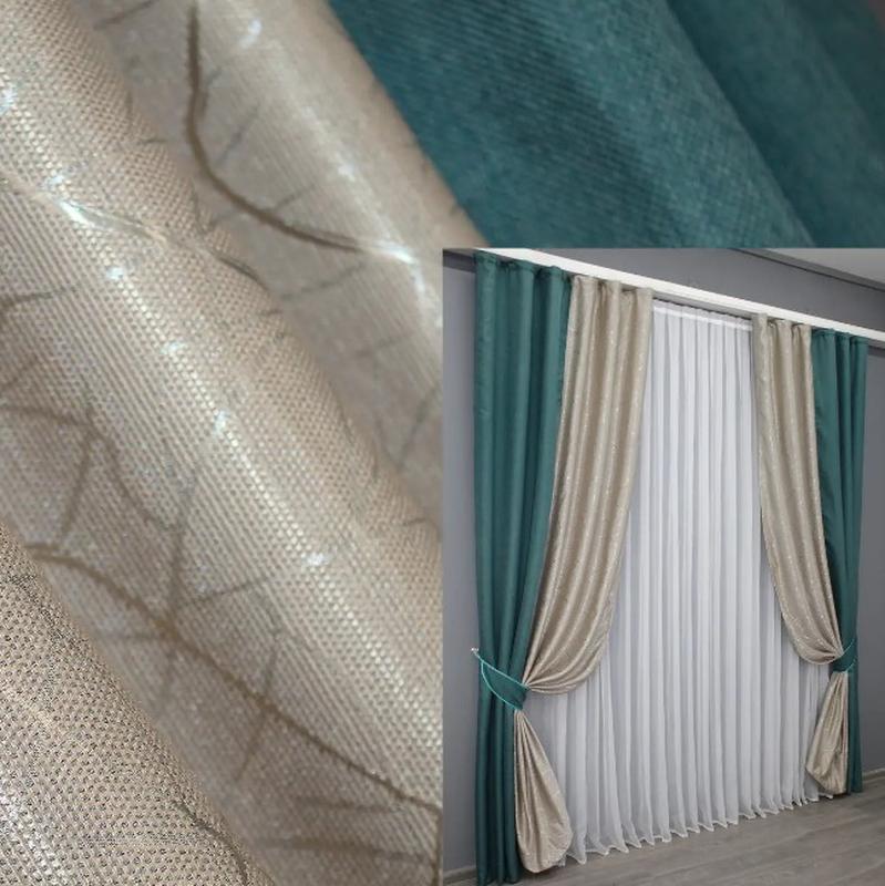 Комбіновані штори (2шт.1,5х2,7м) льон блекаут. колір бірюзовий з бежевим