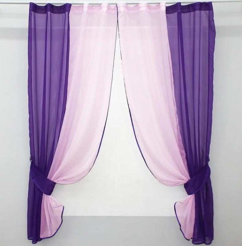 Готовий комплект штор на кухню - це ідеальний вибір для ніжного і повітряного оформлення вікон в будь-якому приміщенні. Тканина, з якої пошита коротка фіранка на кухню або балкон, має дихаючу структуру, добре пропускає повітря і м'яко розсіює світло. Кухонні шторки відмінно вписуються в будь-який інтер'єр і добре поєднуються з усіма видами штор. На вікнах гардина для кухні або балкону виглядає стильно і елегантно. Шторки розраховані на карниз 2 м. Ширина в розтягнутому вигляді: 2.65 м. Довжина: 1.7 м. До комплекту пришита тасьма з петельками. Тканина - шифон. .