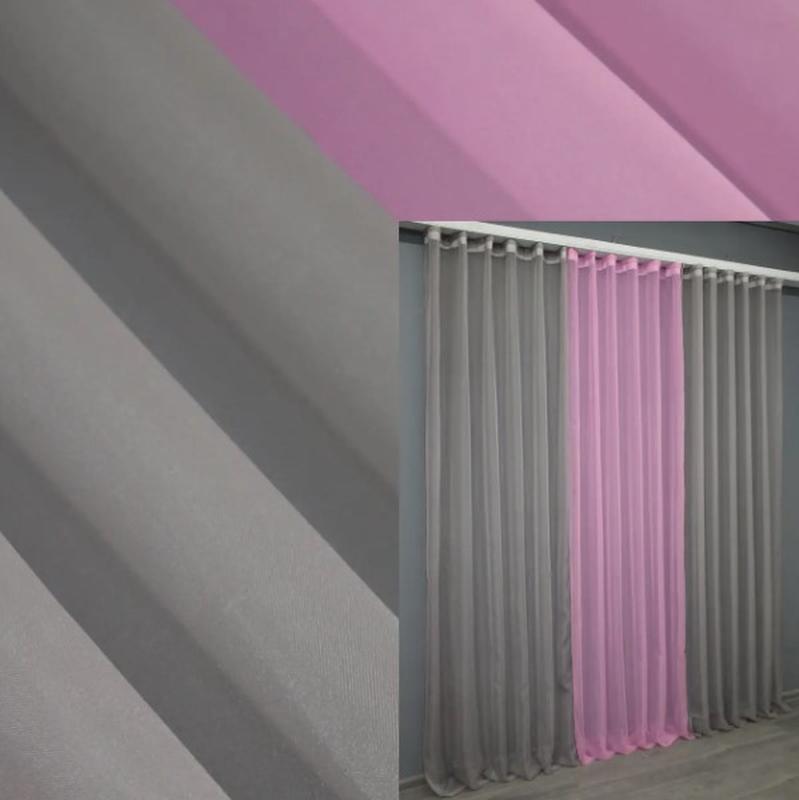 Декоративна гардина (3х2,8м) шифон. колір сірий з рожевим