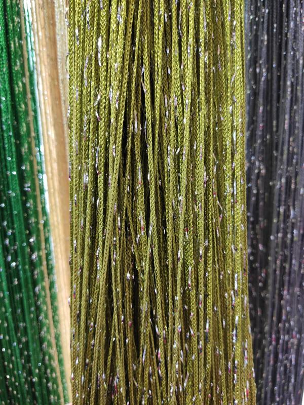 Шторы нити дождь кисея. штори нитки з люрексом прямі - оливковий