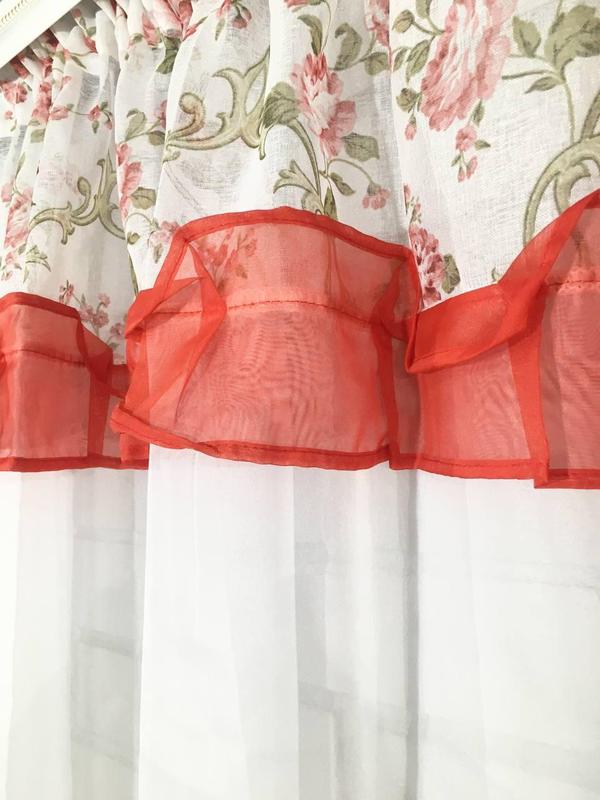 Тюль на кухню веранду коридор гостинную шифон и лён готовый пошитий 1 шторка красный с бел...
