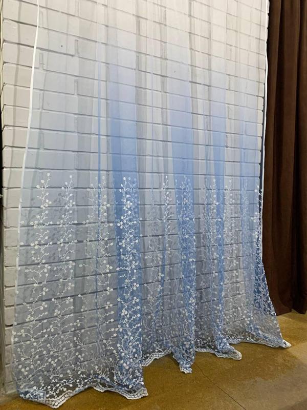 Синий готовый тюль (гардина) фатин сетка с вышивкой, омбре с вышивкой для спальни, гостино...