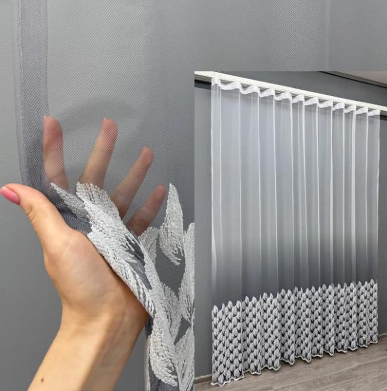 Тюль на основі грек сітки - дихаючої тканини з матовою поверхнею підійде для будь-якого інтер'єру та кімнати: вітальні, спальні або дитячої. Гардина виглядає благородно і елегантно, тому тюль з фатину стане гідною прикрасою для ваших вікон. Структура тканини сітки. Висота 2,75 м. Якщо вам потрібно пошити тюль за розміром, то висоту вказуйте в коментарі до покупки. Потрібну вам ширину, вказуйте при покупці. Спосіб пошиття - пришивається тасьма, якщо потрібно ми можемо відразу підшити тасьму з петельками.