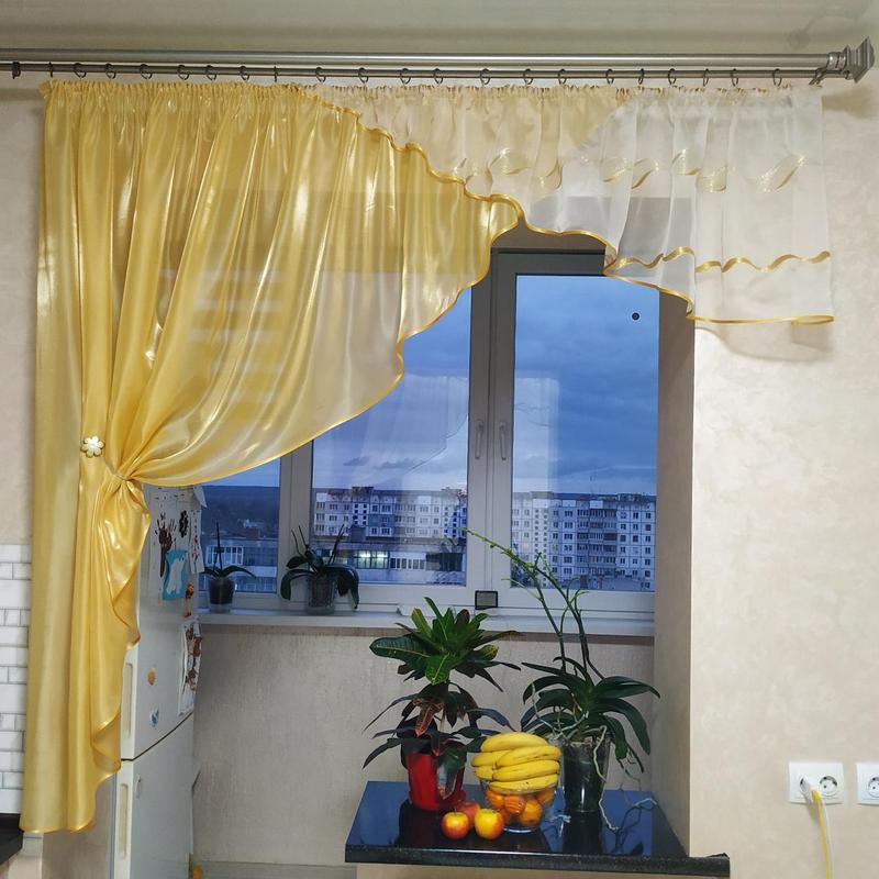 Тюль на кухню. готовая короткая тюль. тюль арка. золотистая короткая тюль. кухонная тюль....