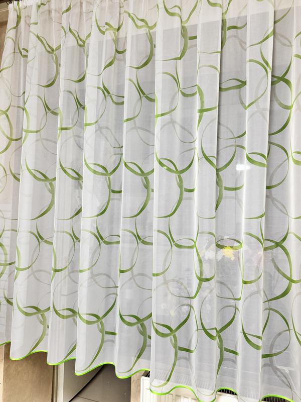 Короткая зелёная тюль. тюль на кухню. тюль до подоконника