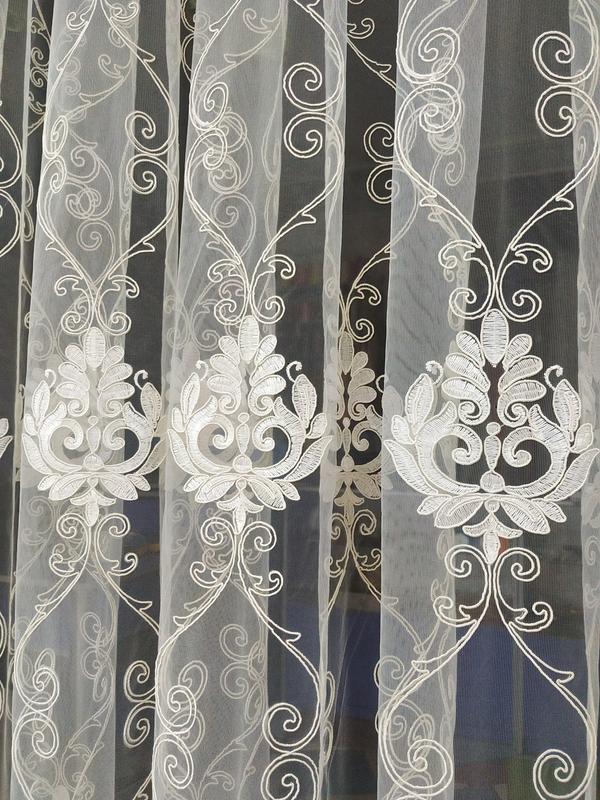 Неповторимая тюль с богатой молочной вышивкой. Ткань с неброским классическим рисунком очень нарядно смотрится на окне и достойно украшает интерьер. Высота: 2.90 м. Ткань набирается по ширине окна, в зависимости от размера карниза. Цена указана за метр ширины. Производство: Турция, Anka textile. Логотип фабрики виден на фото низа ткани. Фабричное качество: тюль практична в использовании, легко стирается и утюжится, не линяет, не выгорает, не даёт усадки. Сохраняет свой первоначальный вид и цвет даже после многих стирок. Отправка по Украине.