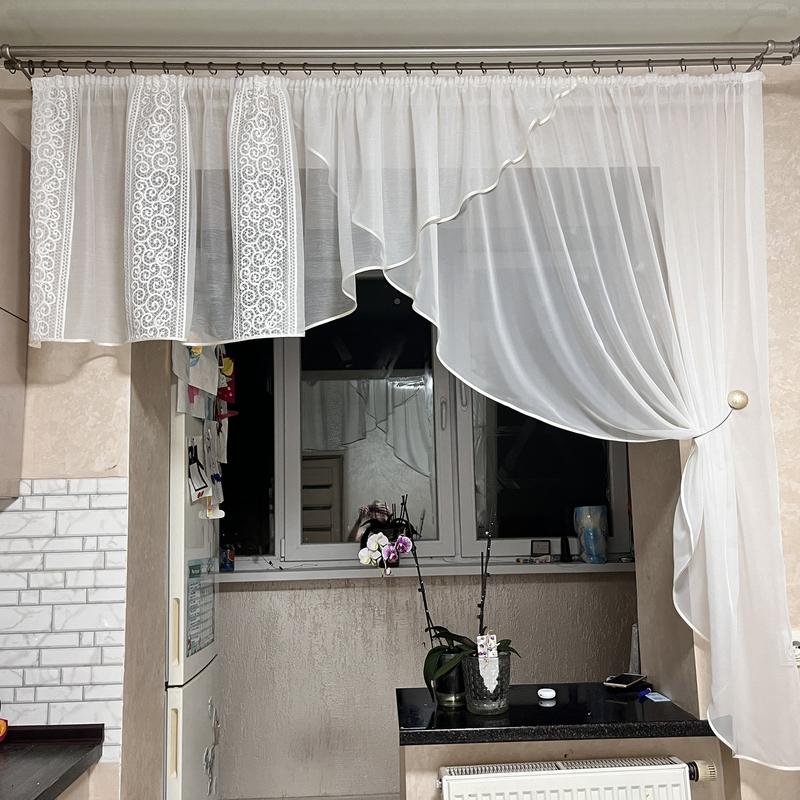 Стильная тюль для кухни. молочная тюль на кухню. готовая занавеска в кухню. арка. короткая...
