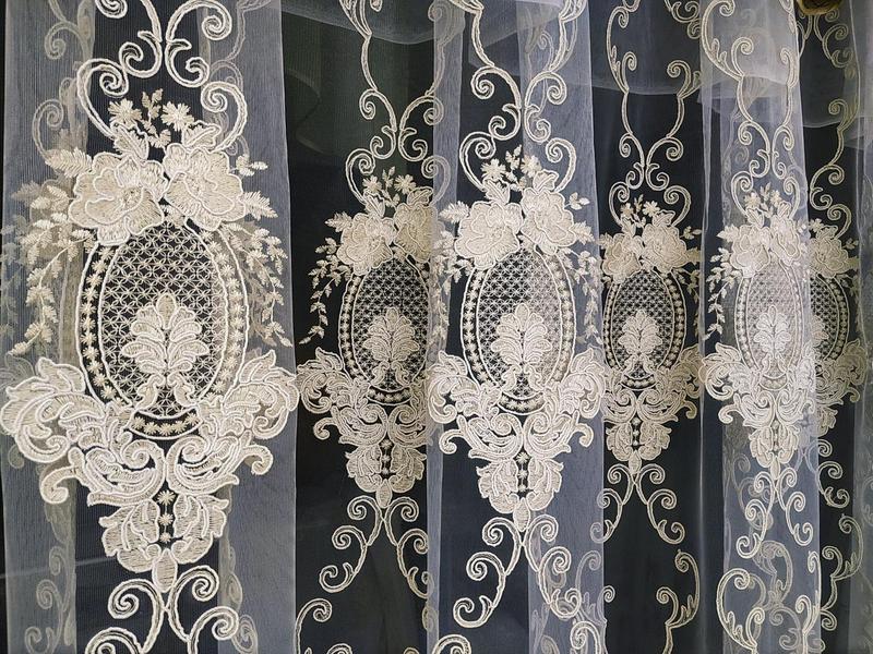 Изысканная турецкая тюль с очень красивой вышивкой. Вышивка спокойного золотистого цвета нарядно обрамлена молочной кордовой нитью, что делает рисунком объёмным и живым. Высота: 2.95 м. Ткань набирается по ширине окна, в зависимости от размера карниза. Цена указана за метр ширины. Производство: Турция, Anka textile. Логотип фабрики виден на фото низа ткани. Отправка по Украине.