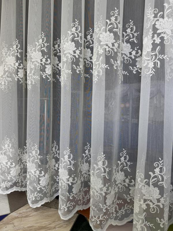 Нежный бамбуковый тюль с вышивкой по низу
