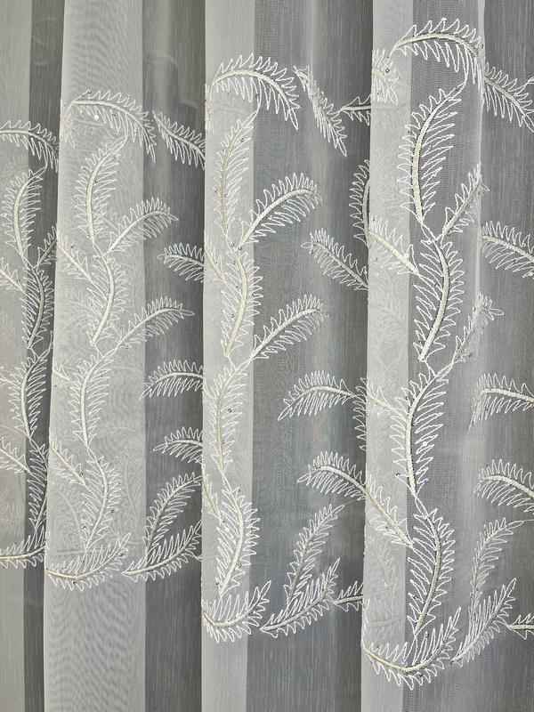 Красивый тюль на современной основе бамбук. Вышивка на тюле украшена мелкими пайетками. Смотрится очень красиво и необычно, а пайетки придают нарядности. Цвет: молочный. Веточка вышита светло-золотистой нитью. Высота тюля 3.0 м. Ткань набирается по ширине окна, в зависимости от размера карниза. Производство: Турция.